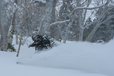 土曜日 吹雪のなか小谷方面BCで上部バフバフ。中~下部藪藪アドベンチャー。コルチナ行けばよかったか?いやいや、これも経験(笑)上部はほんとにすさまじい軽粉・深粉で一瞬も前が見えませんでした!