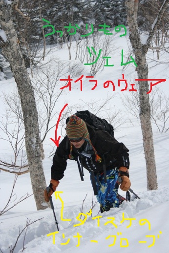 仕方なく、天狗からヒヨドリ尾根方面に標高を落としつつ滑るが・・・