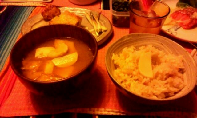 そんな訳で、タケノコご飯とタケノコ味噌汁!