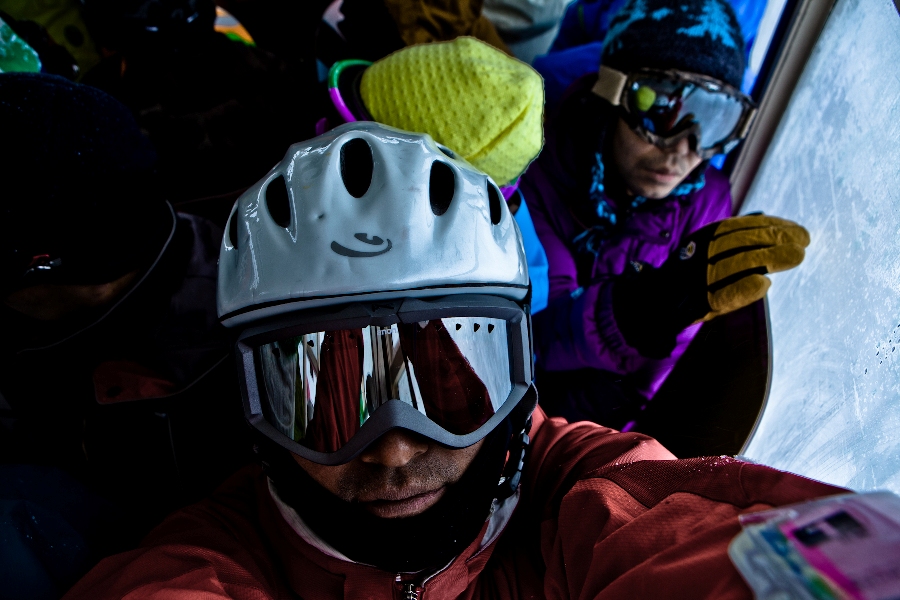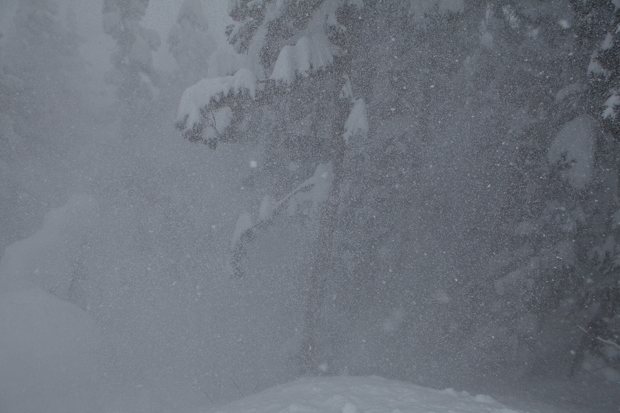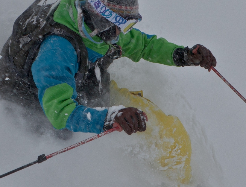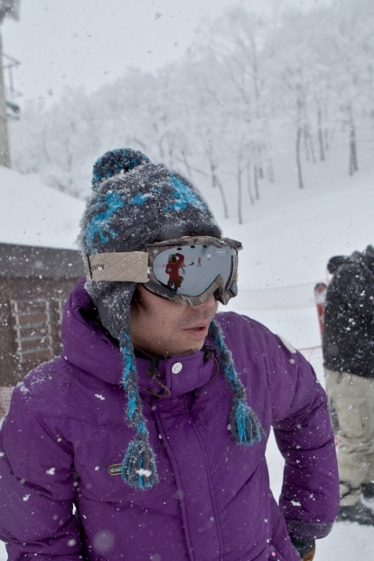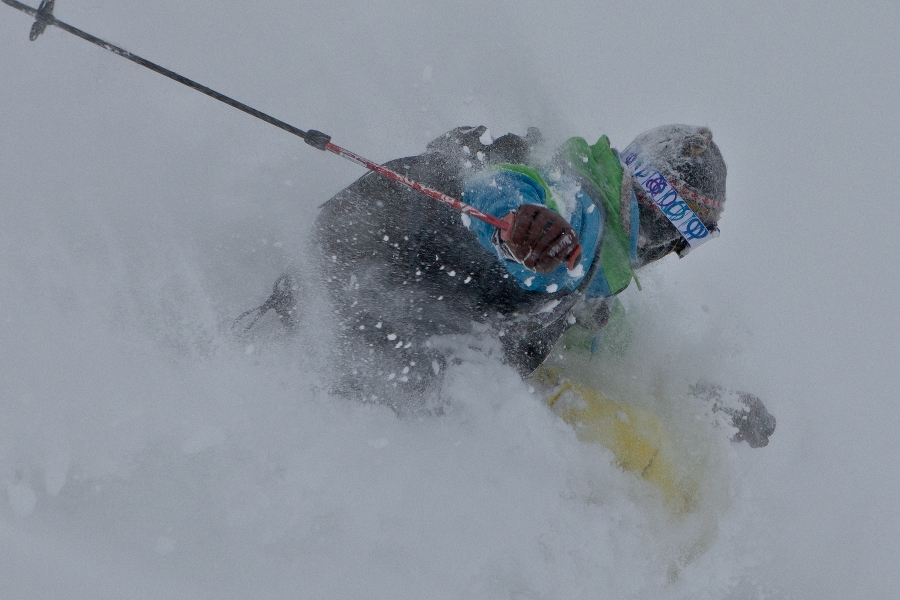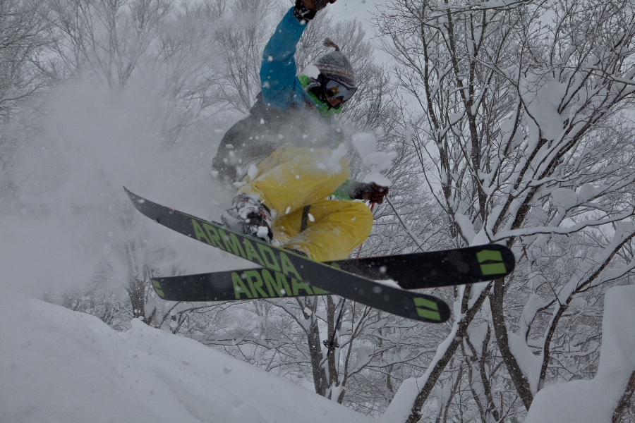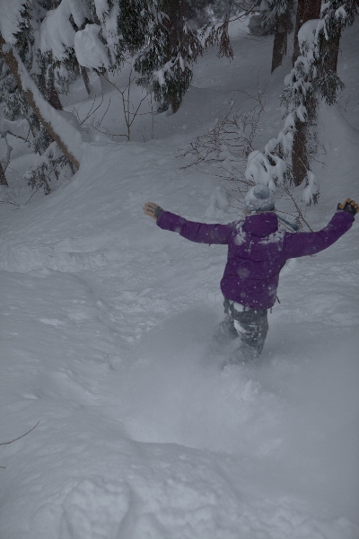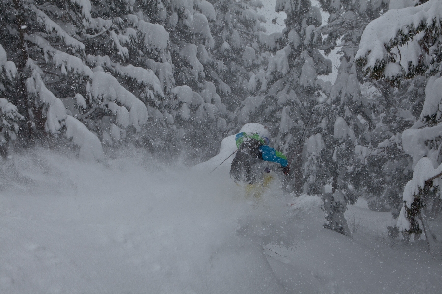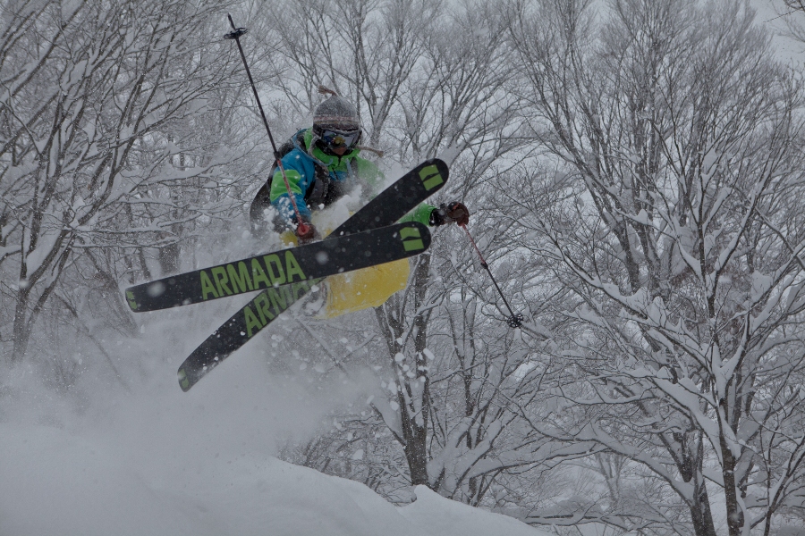 滑る雪はパウダー。斜面は藪がち(笑)