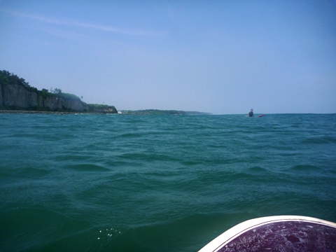 しかし、この日は風は収まったものの、ウネリも収まり、各ポイントともフラットでアウトだったそうですが、そのポイントはかろうじて波が割れていました。