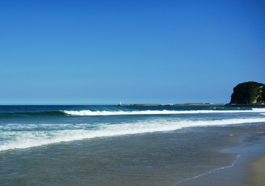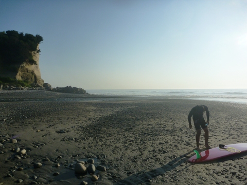 とわいかず、ウネリ弱くややショア気味のブレイク。