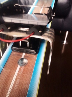 サーフィンのリーシュやワックスをおろして、スキー仕様に片付けたら、ワックスまで届かなかった・・・