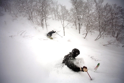 まっ、私の方は無理やり粉を巻き上げるべく、深い、ふかーいターンをしてますが・・・